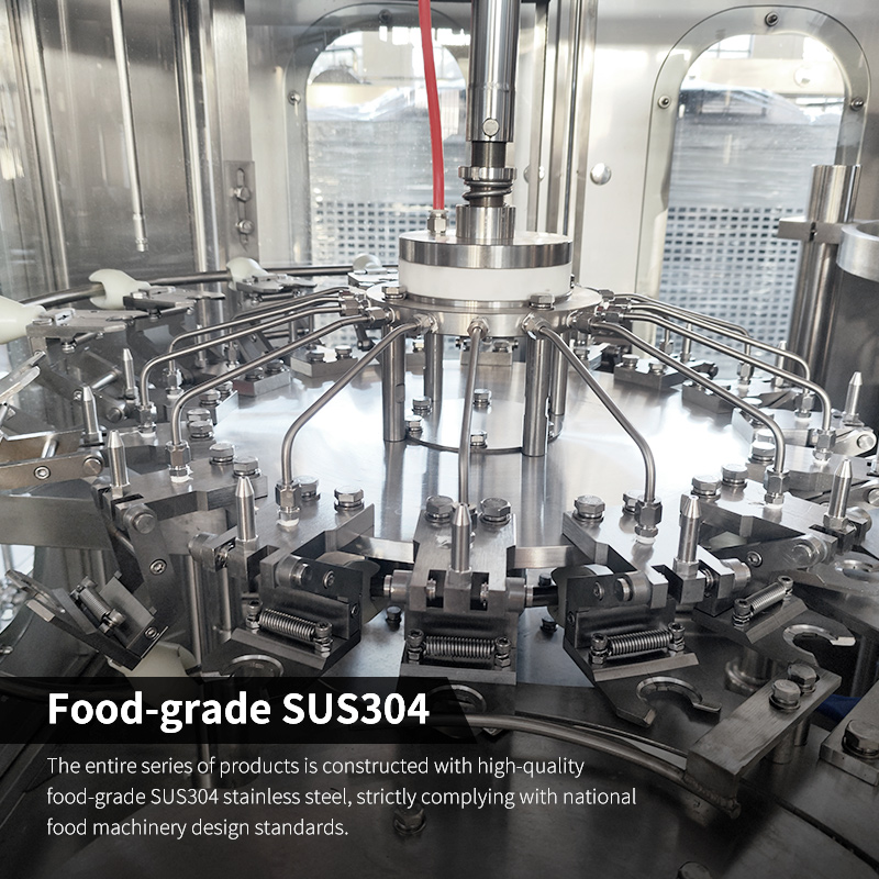 The filling system employs the isobaric (pressure-equalizing) filling principle, ensuring fast and stable operation, precise liquid levels, and sufficient carbonation. Compared to similar equipment, our product offers higher production capacity, stable and safe operation, low failure rates, a high degree of automation, and cost-effectiveness.