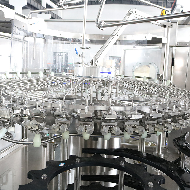 This equipment is primarily designed for the filling of carbonated beverages, integrating three main functions: bottle rinsing, filling, and capping. It operates fully automatically and is suitable for filling PET bottles with carbonated juices, carbonated mineral water, cola, Sprite, and similar beverages. The machine exhibits strong adaptability to different bottle shapes, allowing for quick and easy adjustments when switching bottle types.