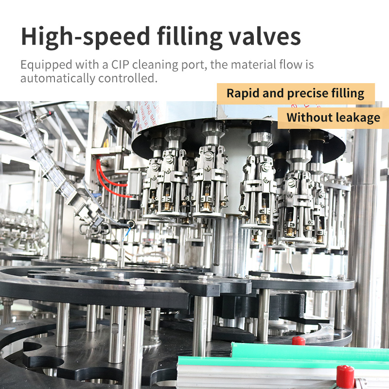 3、The high-speed filling valves ensure fast, stable, and precise filling without leakage or foaming, while maintaining optimal carbonation levels.