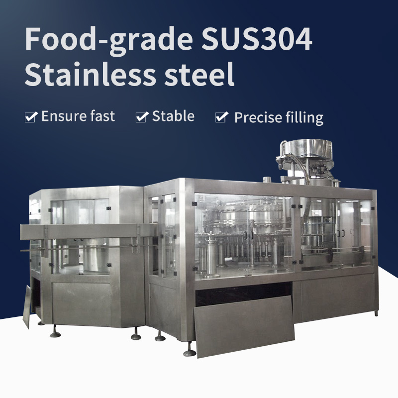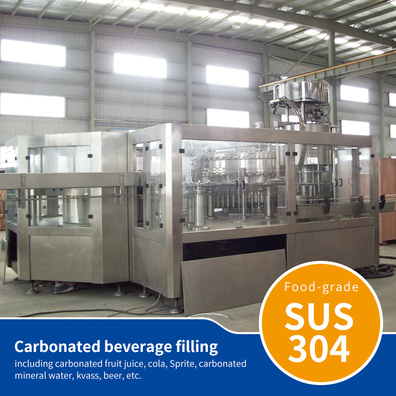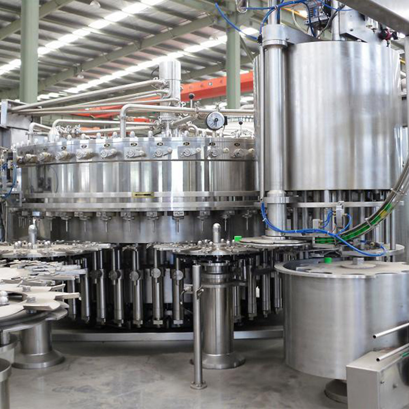 This equipment is primarily designed for the filling of carbonated beverages, integrating three main functions: bottle rinsing, filling, and capping. It operates fully automatically and is suitable for filling PET bottles with carbonated juices, carbonated mineral water, cola, Sprite, and similar beverages. The machine exhibits strong adaptability to different bottle shapes, allowing for quick and easy adjustments when switching bottle types.