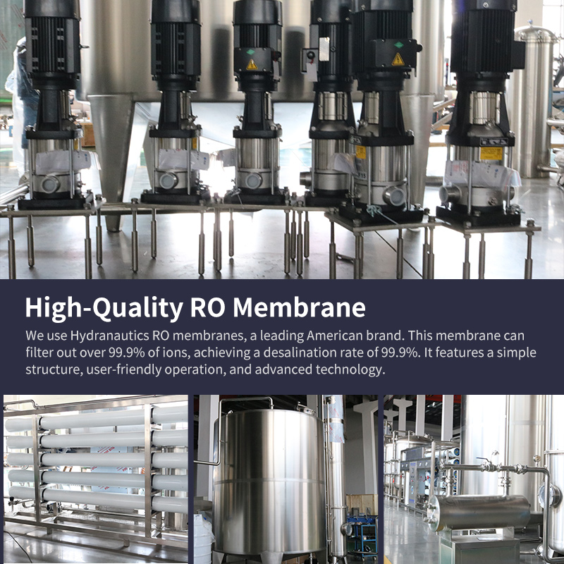 We use Hydranautics RO membranes, a leading American brand. This membrane can filter out over 99.9% of ions, achieving a desalination rate of 99.9%. It features a simple structure, user-friendly operation, and advanced technology.